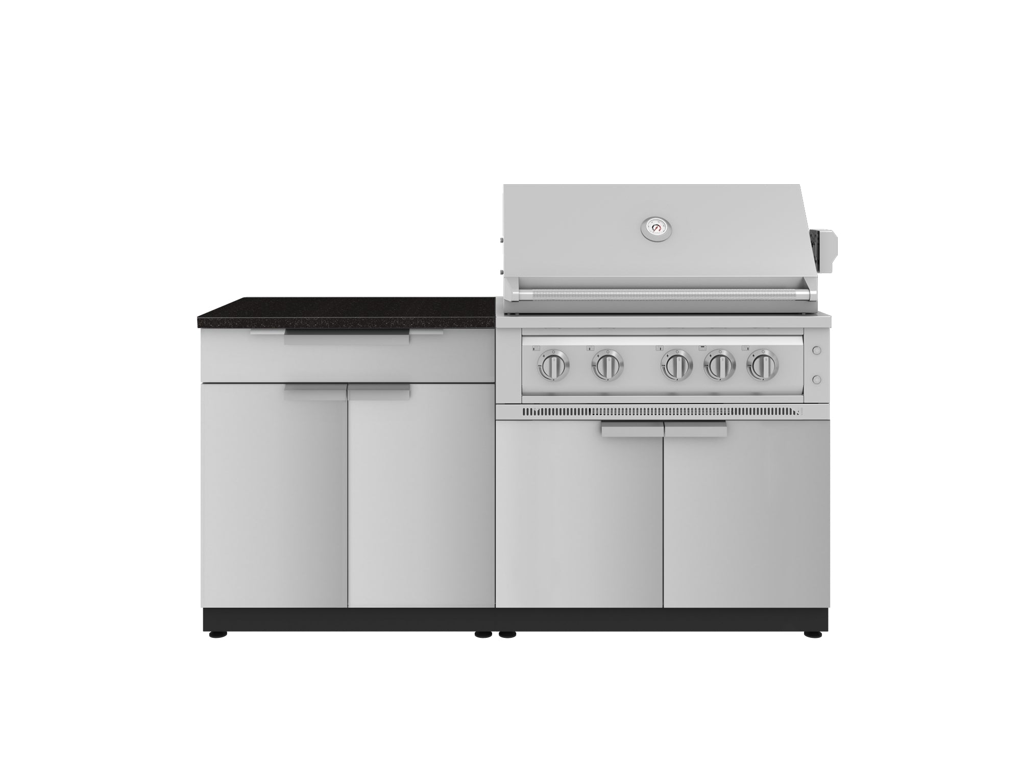 NewAge Outdoor Kitchens Stainless-Steel 5-Piece Cabinet Set with with 3-Drawer, Bar, Grill Cabinet, Platinum Grill and Countertop
