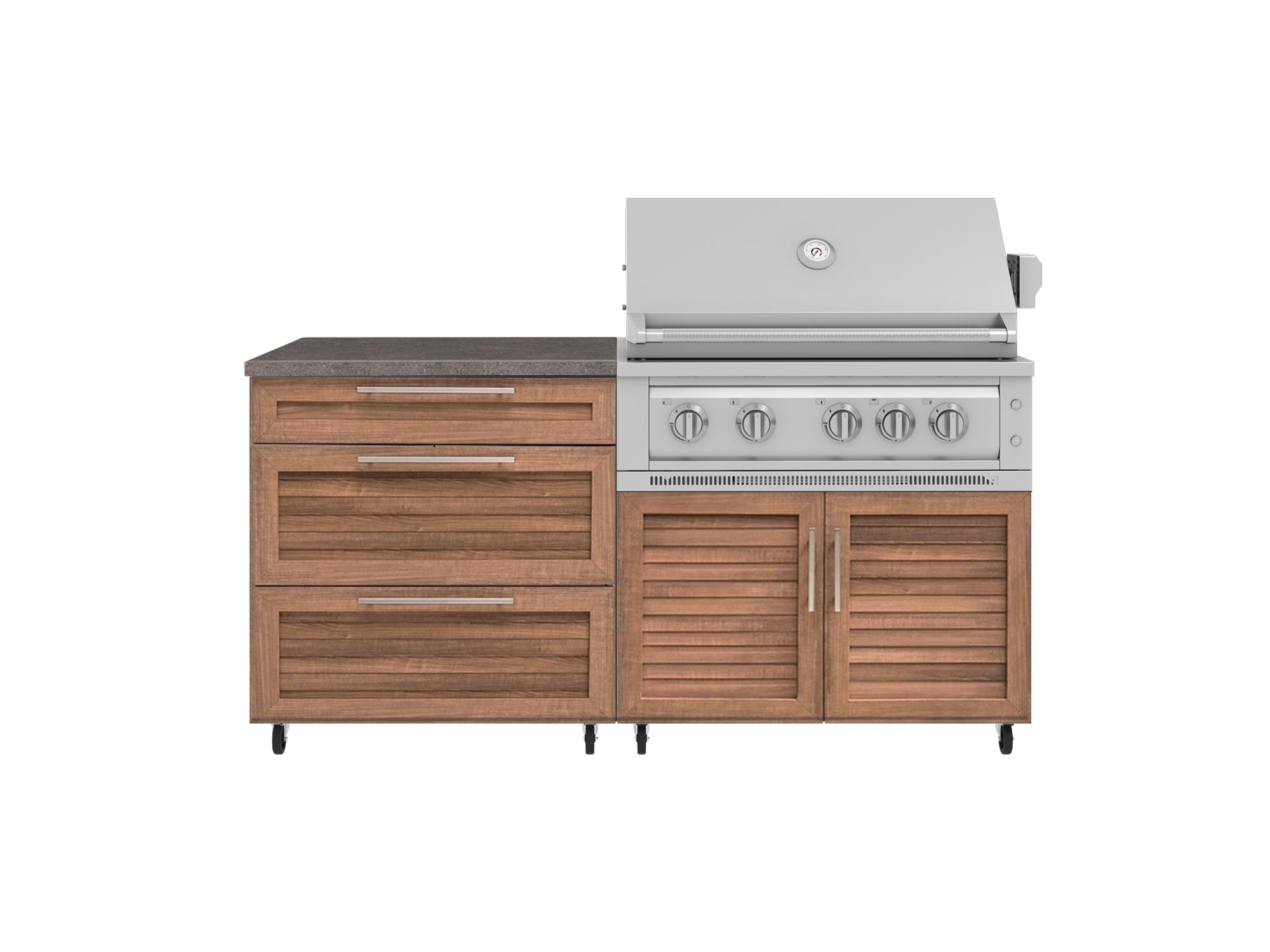 NewAge Outdoor Kitchens Stainless Steel 5-Piece Cabinet Set with 3 Drawer, 2-Door with Drawer, Grill Cabinet, Platinum Grill and Countertop