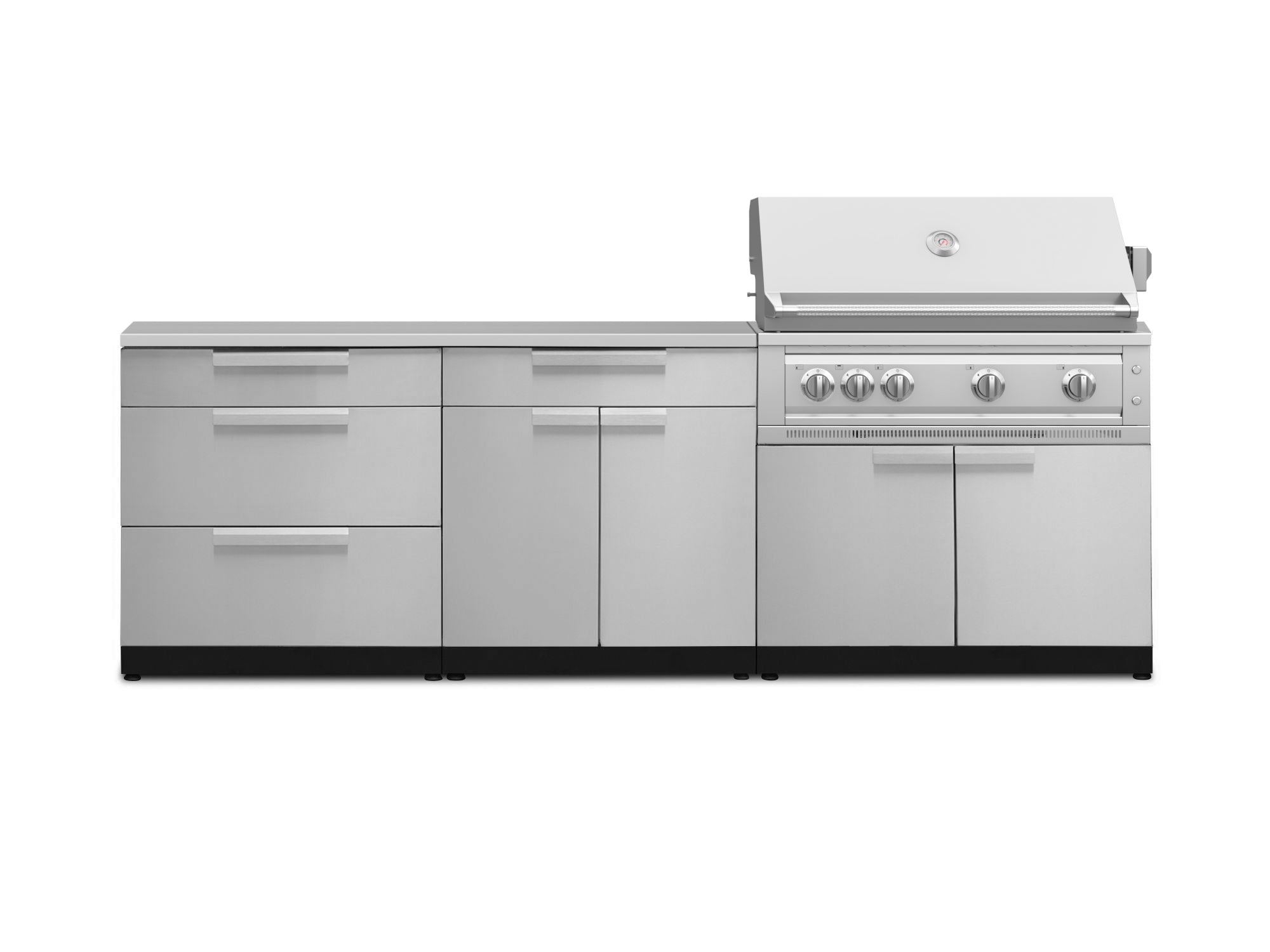 NewAge Outdoor Kitchens Stainless-Steel 5-Piece Cabinet Set with 3 Drawer, 2-Door with Drawer, Grill Cabinet, Platinum Grill and Countertop