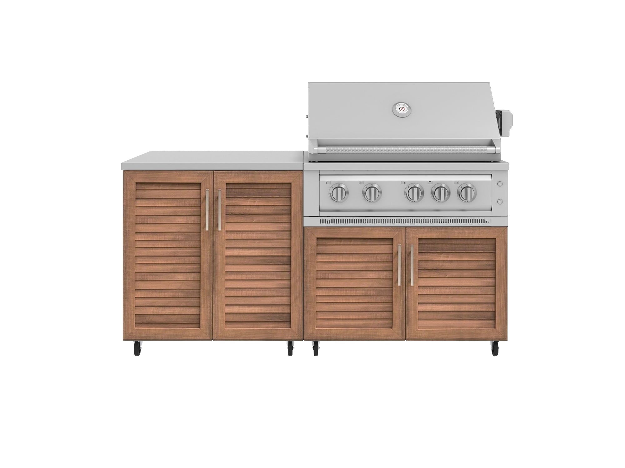 NewAge Outdoor Kitchens Stainless Steel 5-Piece Cabinet Set with with 3-Drawer, Bar, Grill Cabinet, Platinum Grill and Countertop