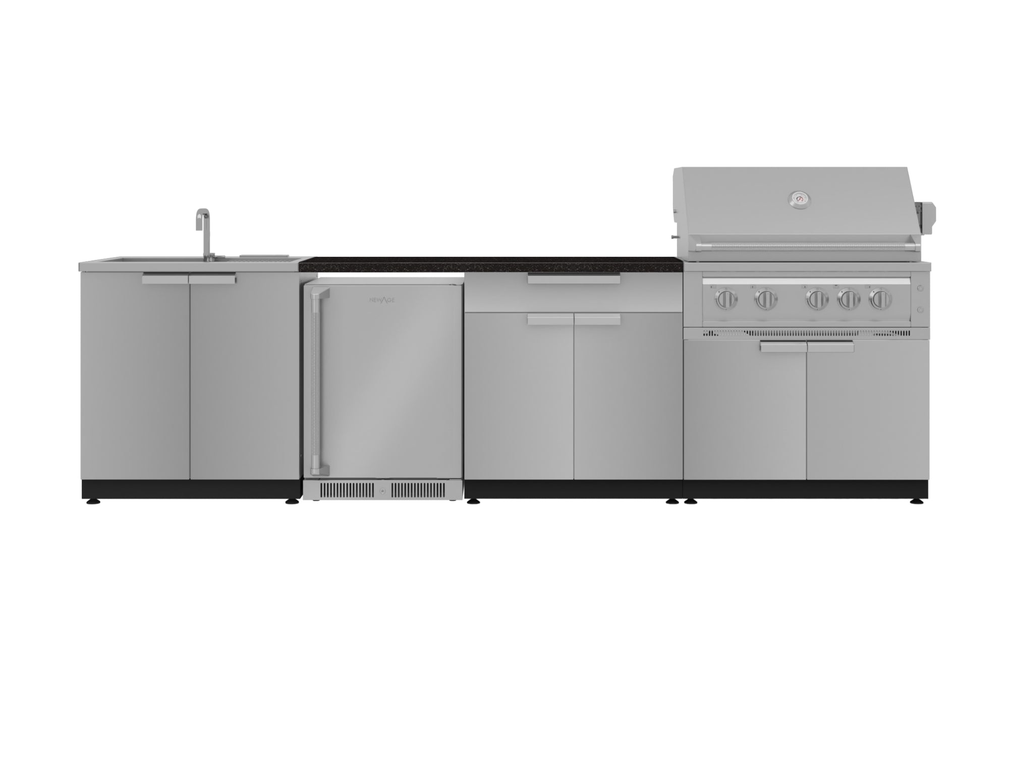 NewAge Outdoor Kitchens Stainless-Steel 5-Piece Cabinet Set with Bar, Sink, Grill Cabinet, Platinum Grill, and Countertop