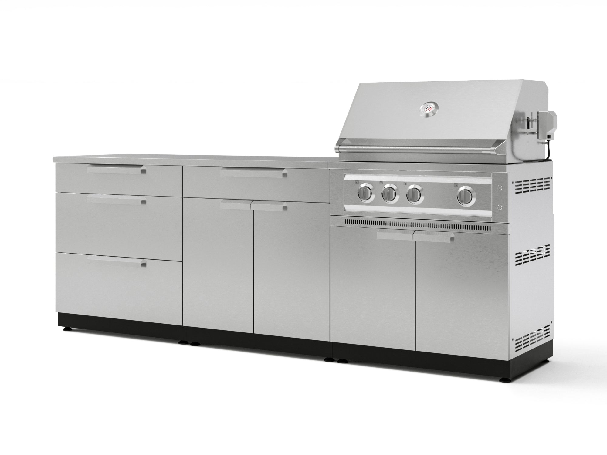 NewAge Outdoor Kitchens Stainless-Steel 4-Piece Cabinet Set with Bar, Grill Cabinet, Platinum Grill, and Countertop