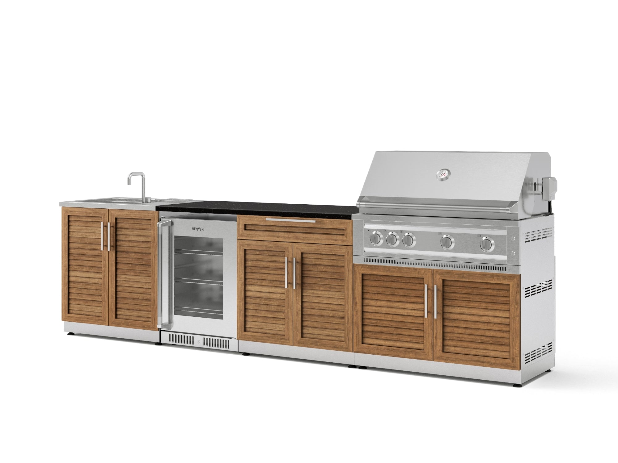 NewAge Outdoor Kitchens Stainless Steel 6-Piece Cabinet Set with Sink, Bar, Grill Cabinet, Platinum Grill, Countertop and Fridge