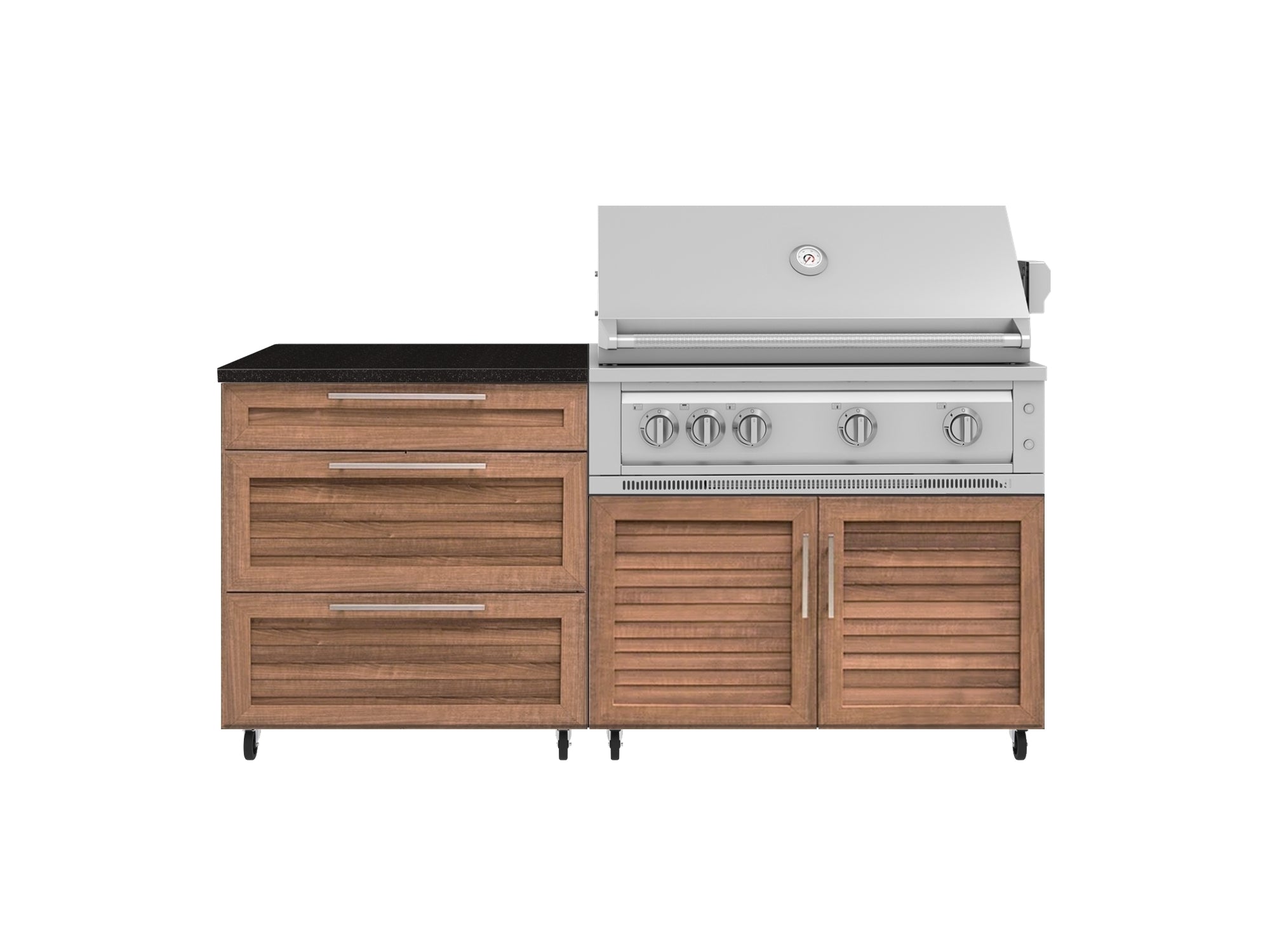 NewAge Outdoor Kitchens Stainless-Steel 5-Piece Cabinet Set with with 3-Drawer, Bar, Grill Cabinet, Platinum Grill and Countertop