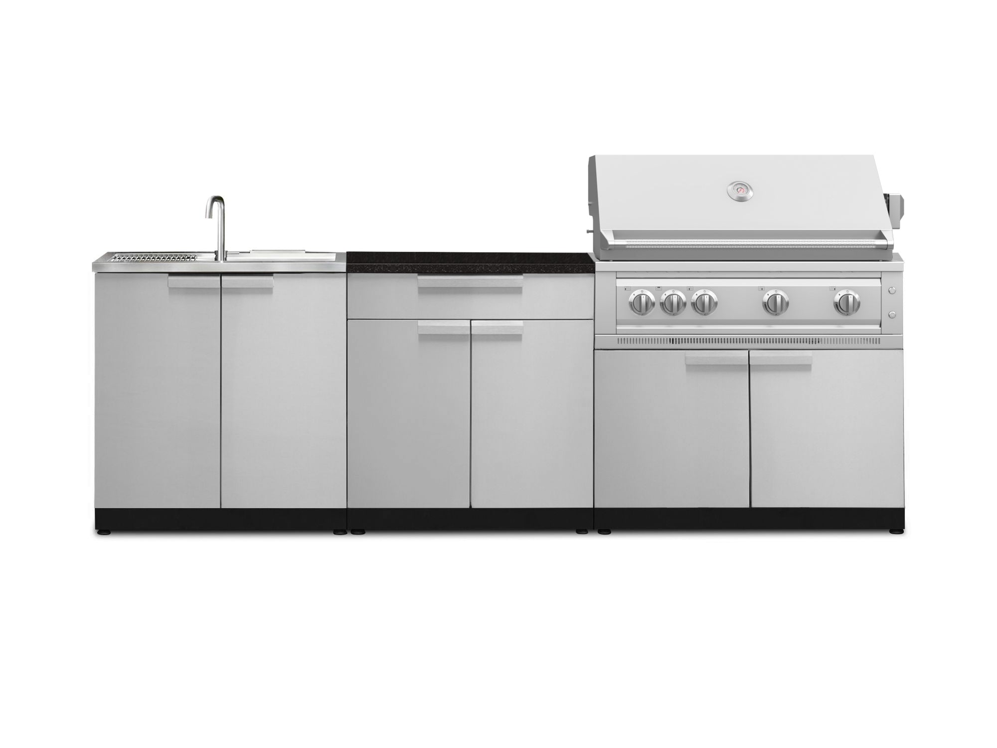 NewAge Outdoor Kitchens Stainless-Steel 5-Piece Cabinet Set with Sink, 2-Door with Drawer, Grill Cabinet, Performance Grill, and Countertop