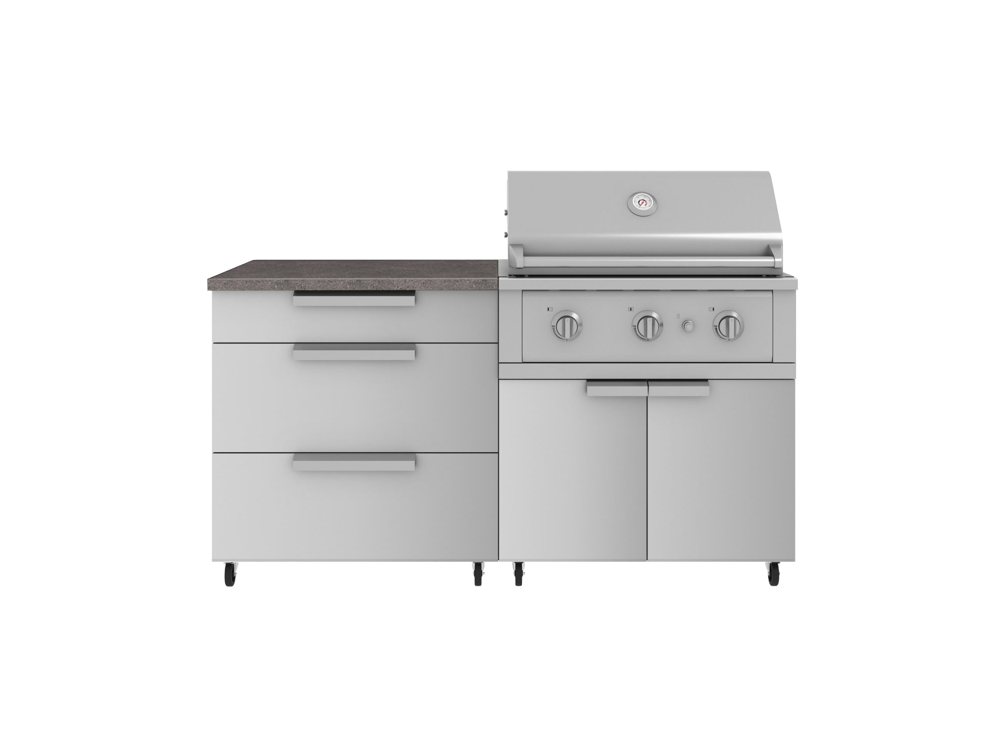 NewAge Outdoor Kitchens Stainless Steel 4-Piece Cabinet Set with Casters and 3 Drawer, Grill Cabinet, Performance Grill, Countertop