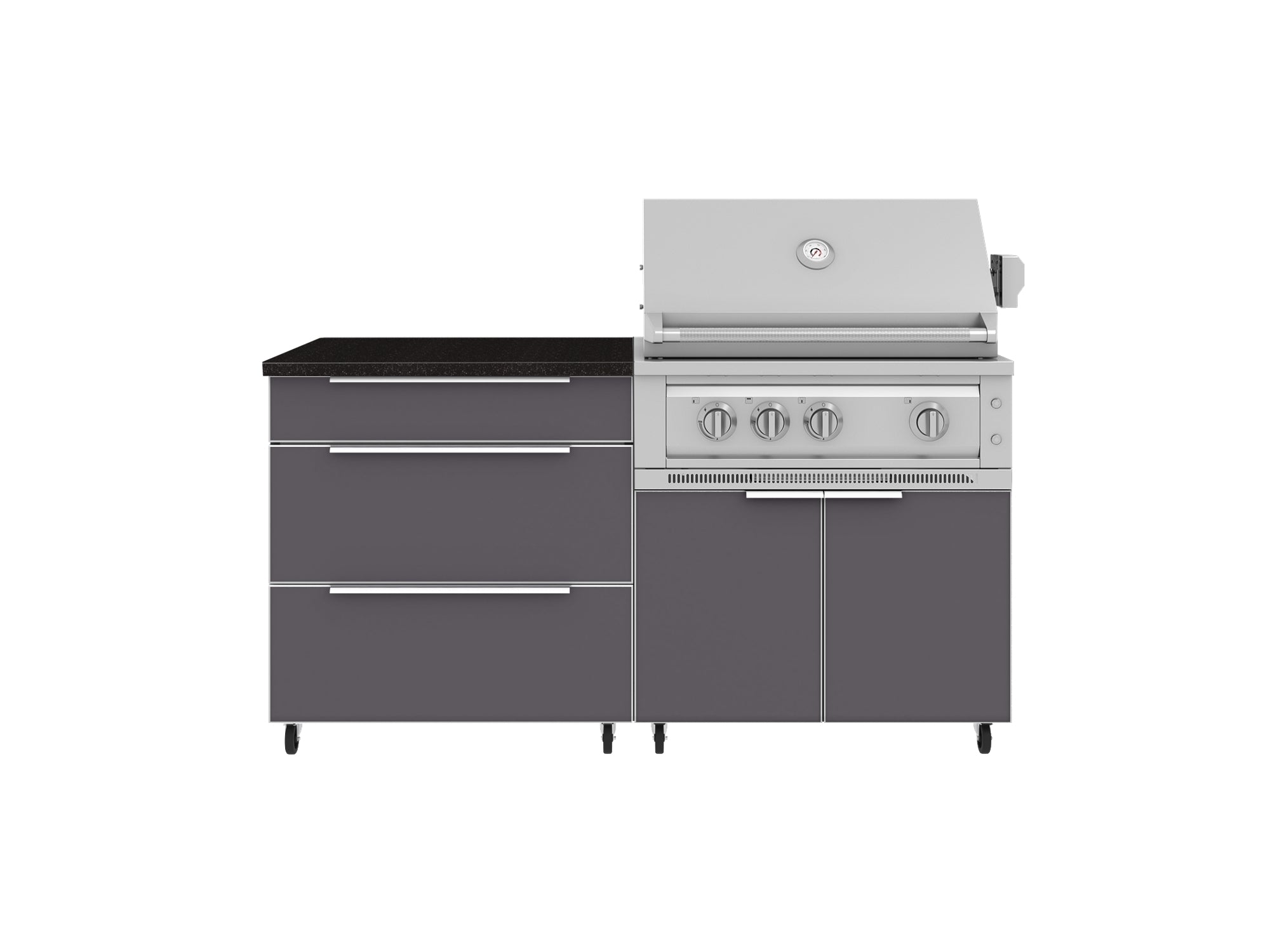 NewAge Outdoor Kitchens Aluminum 4-Piece Cabinet Set with Casters and 3 Drawer, Grill Cabinet, Platinum Grill, Countertop