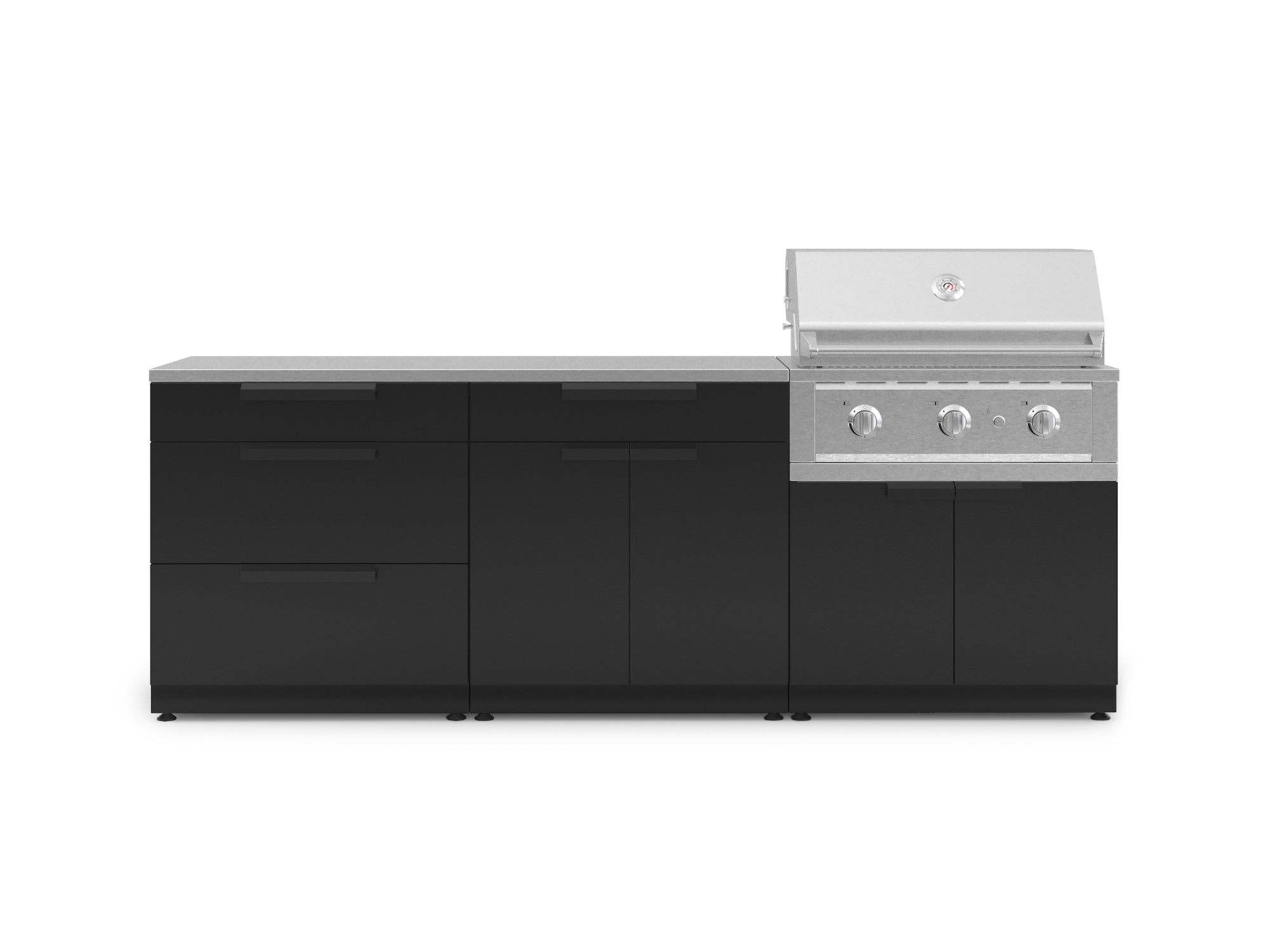 NewAge Outdoor Kitchens Stainless-Steel 5-Piece Cabinet Set with 3-Drawer, Bar, Grill Cabinet, Performance Grill and Countertop