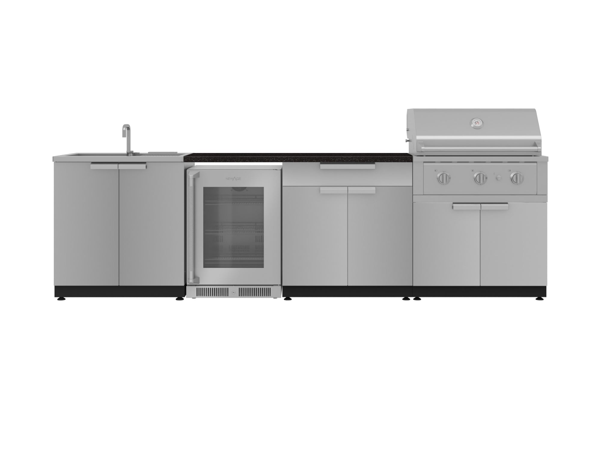 NewAge Outdoor Kitchens Stainless Steel 3-Piece Cabinet Set with Sink Cabinet and Performance Gas Grill