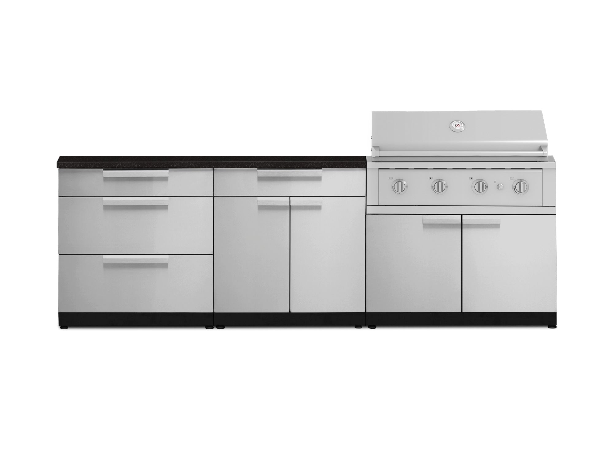 NewAge Outdoor Kitchens Stainless-Steel 4-Piece Cabinet Set with 3 Drawer, Grill Cabinet, Platinum Grill, and Countertop