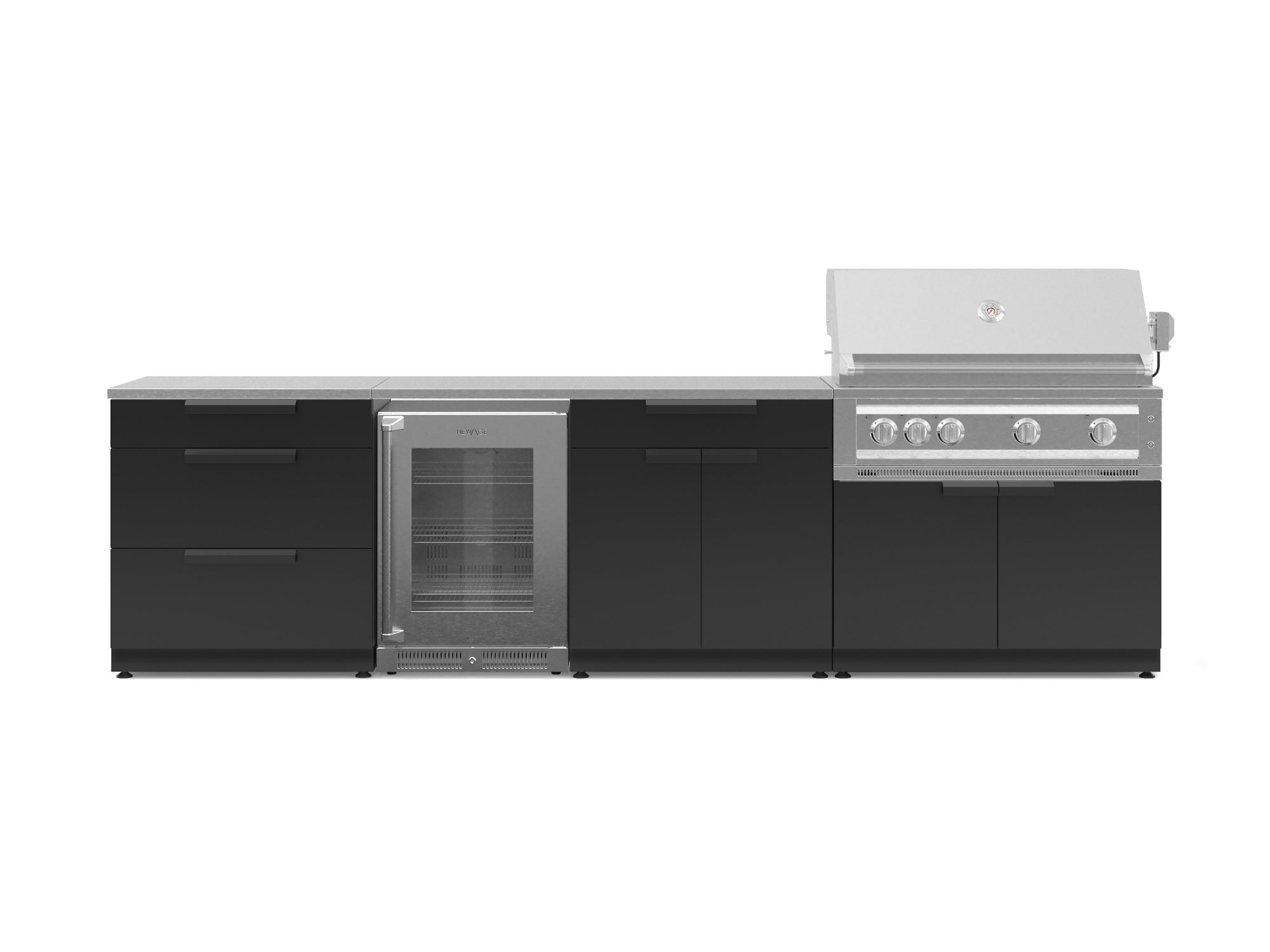 NewAge Outdoor Kitchens Stainless-Steel 5-Piece Cabinet Set with 3-Drawer, Bar, Grill Cabinet, Performance Grill and Countertop