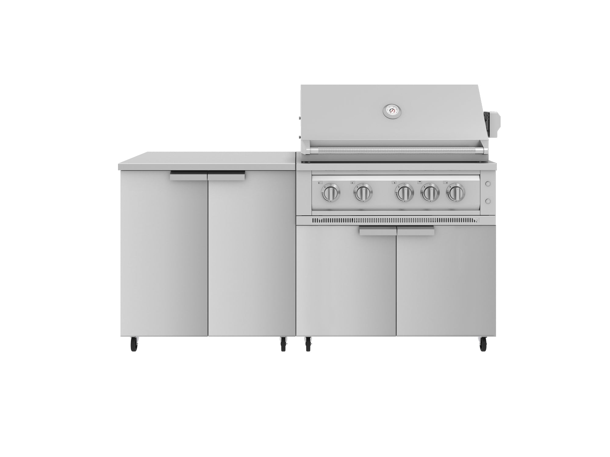 NewAge Outdoor Kitchens Stainless-Steel 5-Piece Cabinet Set with with 3-Drawer, Bar, Grill Cabinet, Platinum Grill and Countertop