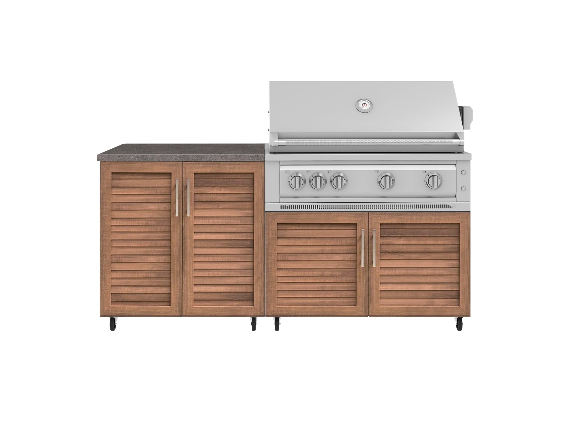 NewAge Outdoor Kitchens Stainless Steel 7-Piece Cabinet Set with 2 Door, Bar, Corner, Grill Cabinet, Platinum Grill, and Countertops