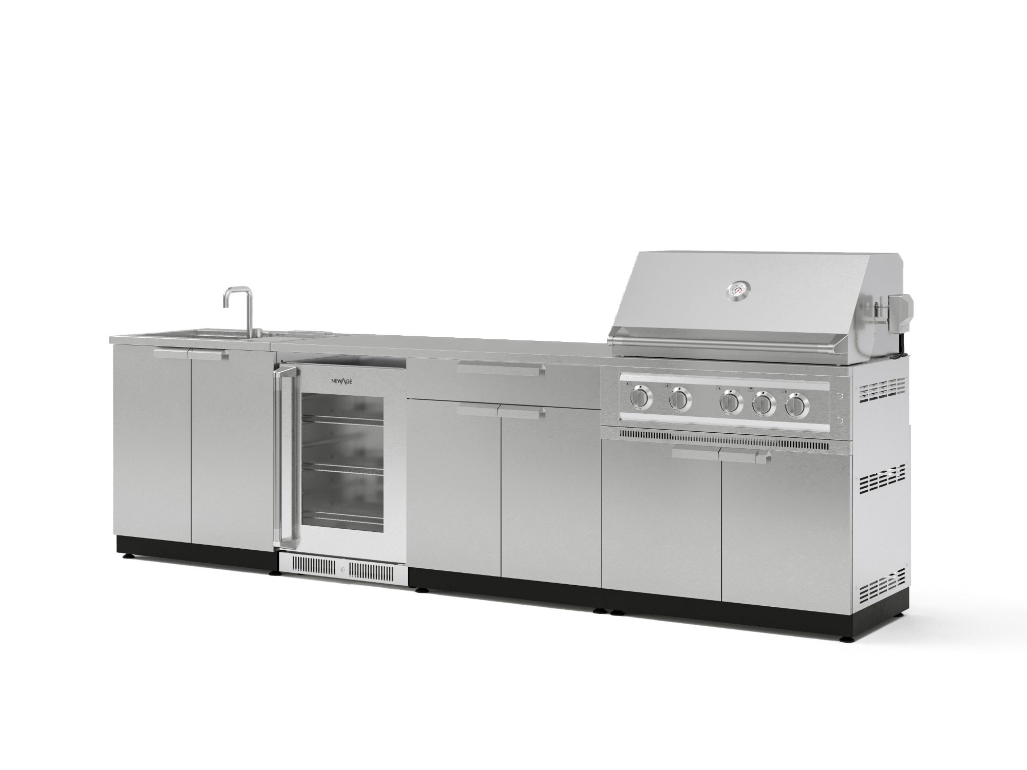 NewAge Outdoor Kitchens Stainless Steel 5-Piece Cabinet Set with Bar, Sink, Grill Cabinet, Platinum Grill, and Countertop