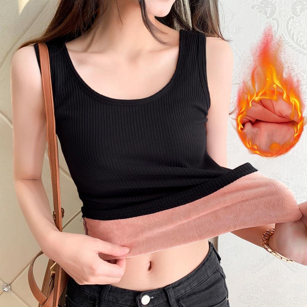 Comfortable, Breathable Womens Warm Vest, Double Layered Fleece Lined, Tight Fit Base Top For Home Clothes black xl