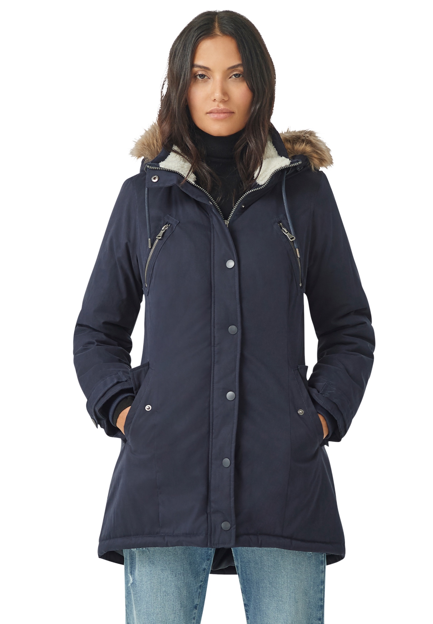 Plus Size Women's Modern A-line Parka by ellos in Vintage Navy (Size 28)