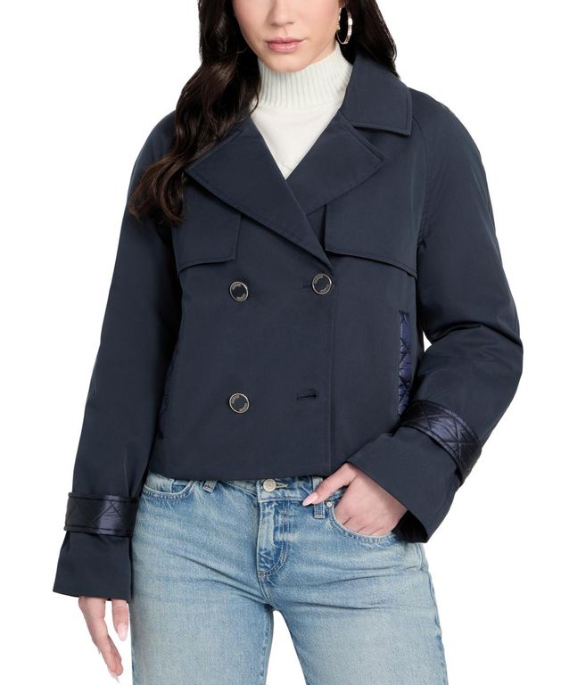 Cropped Quilted-trim Trench Coat - Blue - Guess Coats