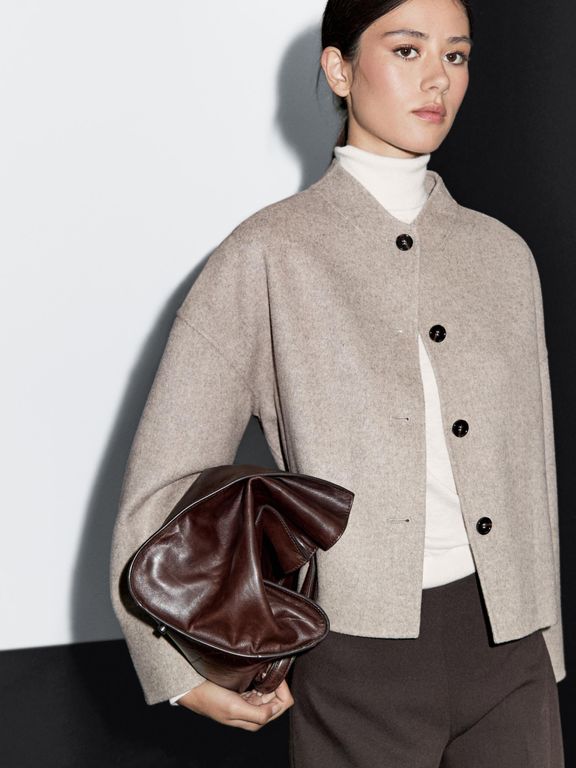 Short Wool Blend Coat With High Collar - Natural - MASSIMO DUTTI Jackets