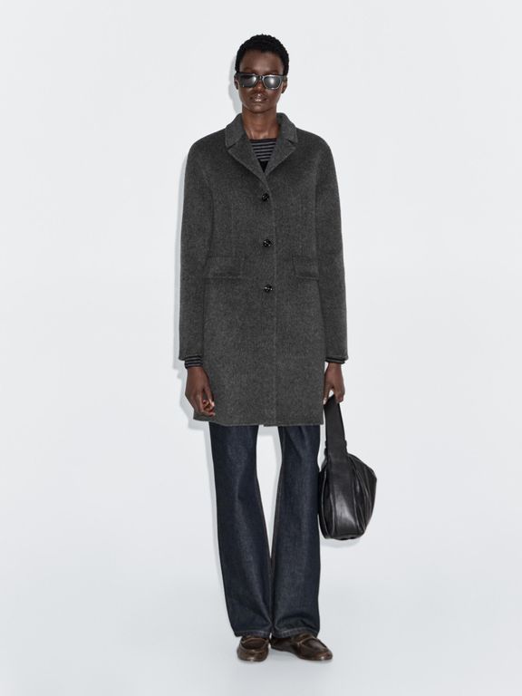 Wool Blend Mid-Length Coat With Lapel Collar - Gray - MASSIMO DUTTI Coats