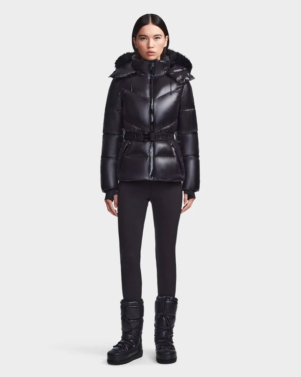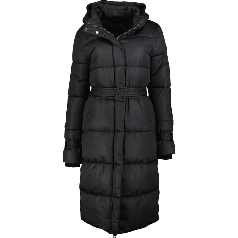 Mara Belted Maxi Puffer Coat With Removable Hood - Black - Noize Coats