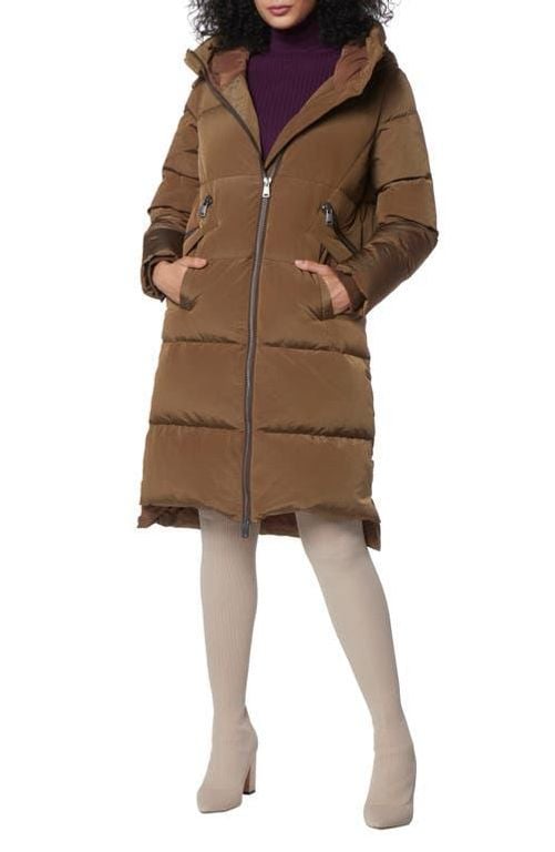 Palma Shimmer Water Resistant Hooded Down Puffer Jacket - Brown - Andrew Marc Jackets