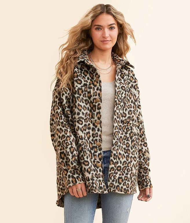 Faux Fur Cheetah Shacket - Brown - Open SZN Jackets