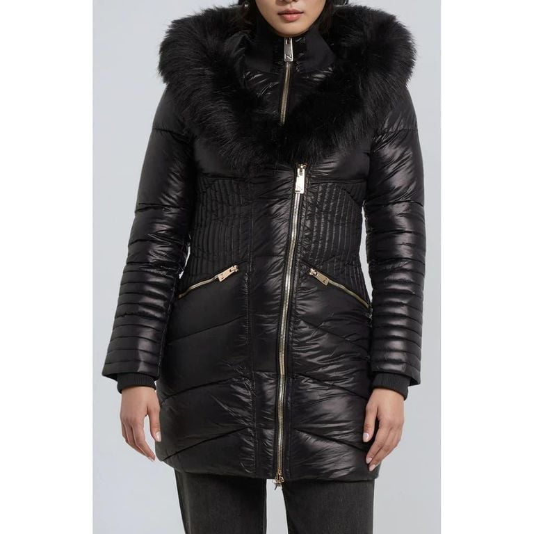 Gigi-El Faux Fur Trim Hooded Parka - Black - Noize Coats