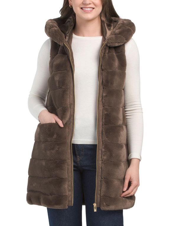 Faux Fur Vest, Polyester - Brown - Tj Maxx Jackets