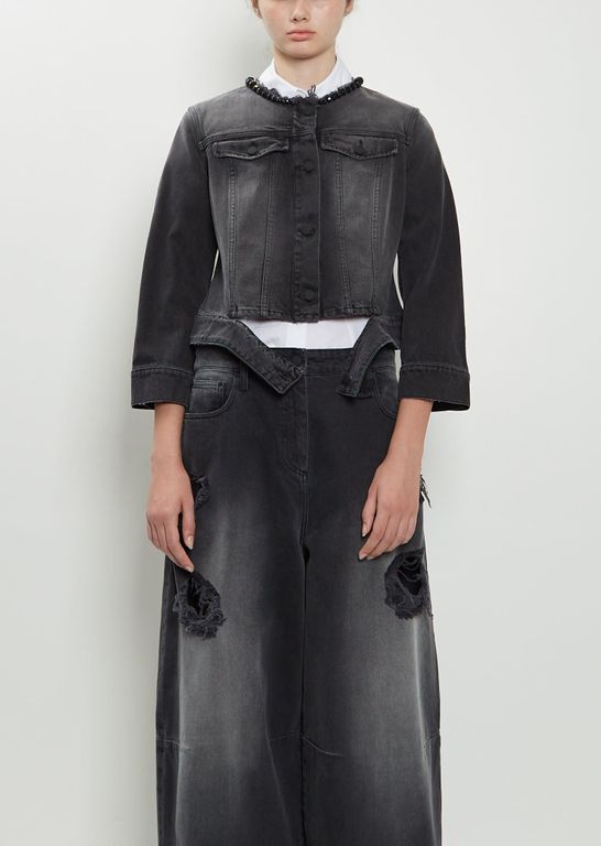 Embellished Neck Fitted Waist Denim Jacket - Black - Simone Rocha Jackets