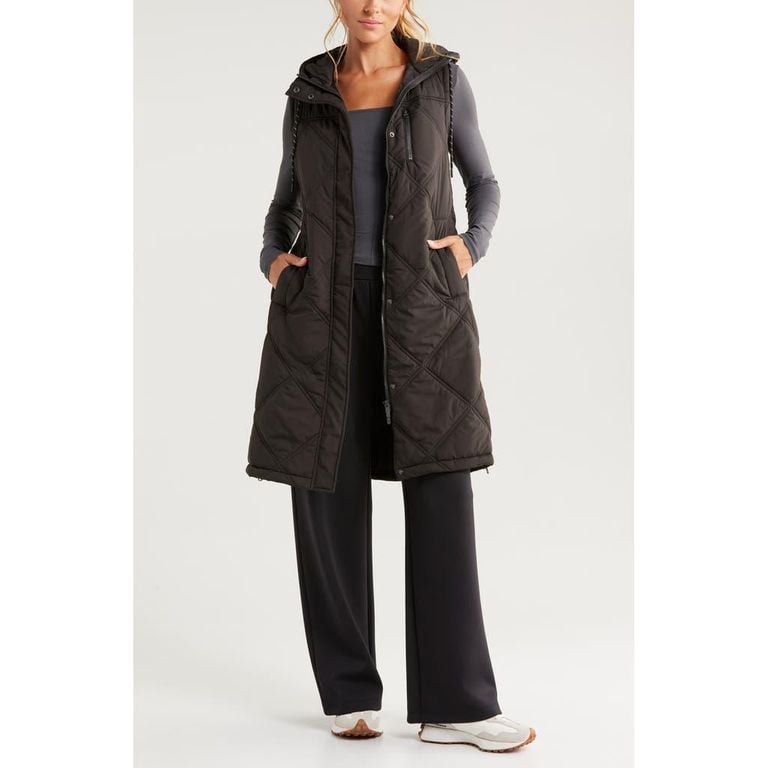 Long Hooded Puffer Vest - Black - Zella Jackets