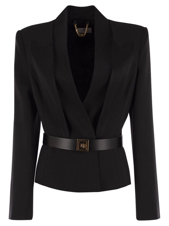 Crepe Jacket With Satin Lapels - Black - Elisabetta Franchi Jackets