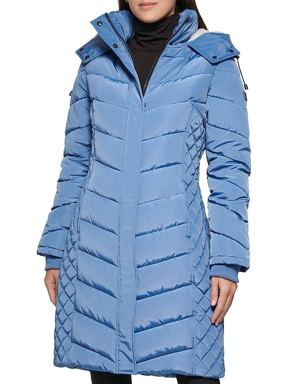 Mixed Quilted Puffer Coat - Blue - Kenneth Cole Coats
