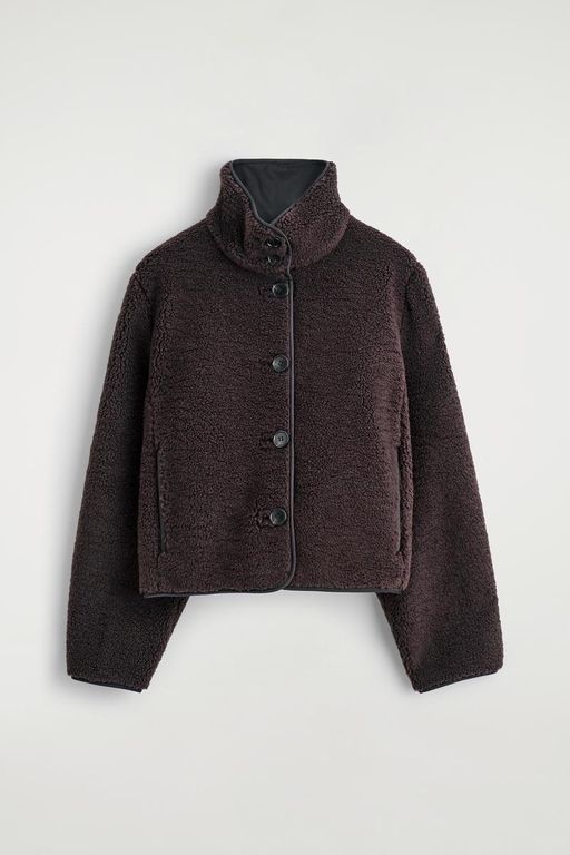 Funnel-Neck Teddy Jacket - Black - COS Jackets