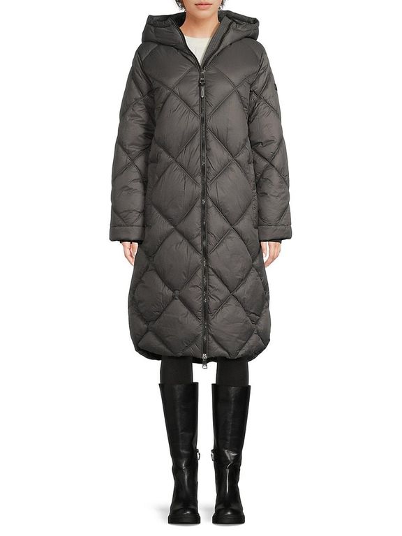 Missy Diamond Quilted Longline Puffer Coat - Gray - DKNY Coats