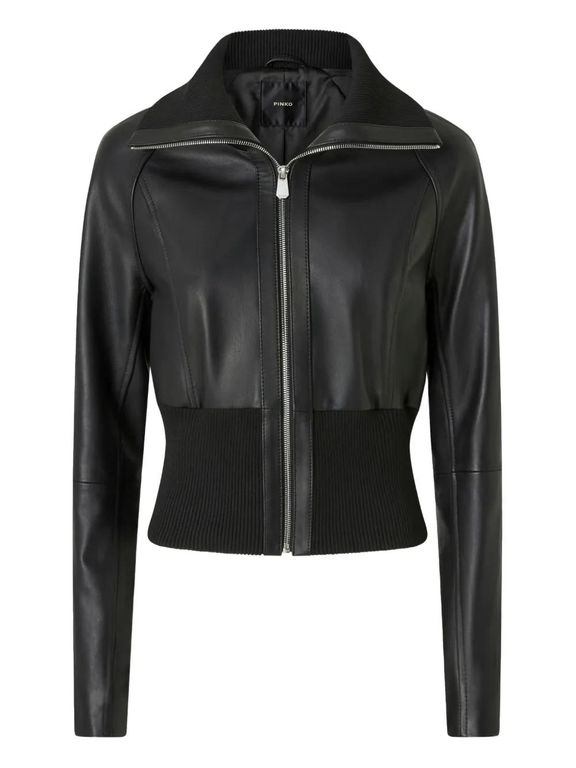 Short Nappa Leather And Knit Jacket - Black - Pinko Jackets