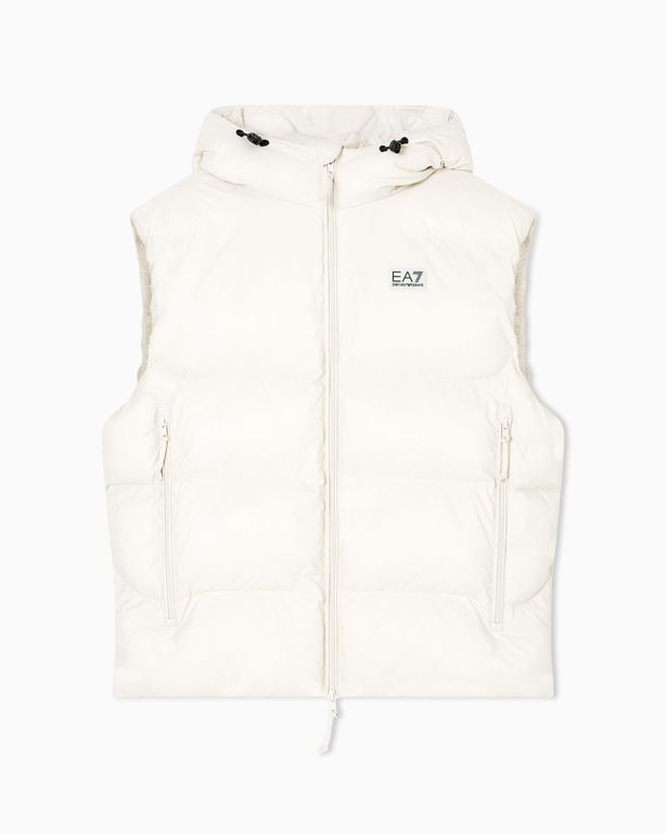 Padded, Hooded Gilet Made Of Technical Fabric - White - EA7 Jackets