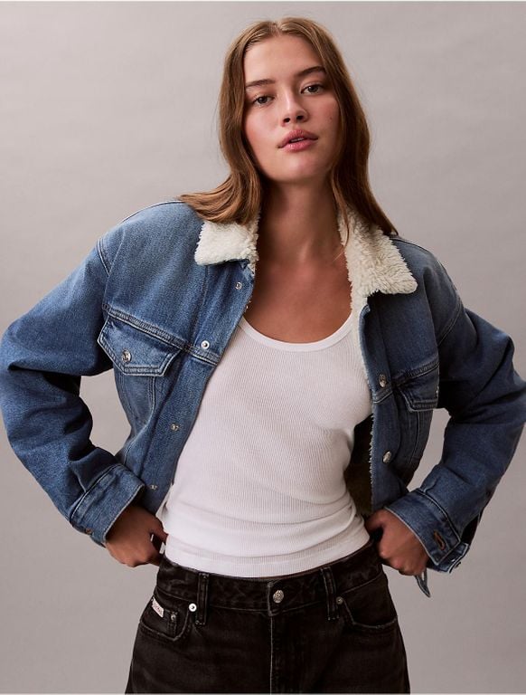 Calvin Klein Denim Sherpa Trucker Jacket - Blue - Calvin Klein Jackets