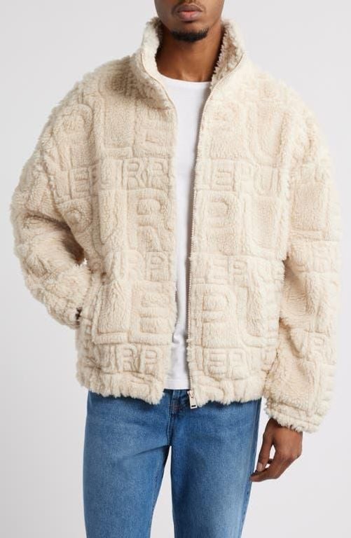 Wordmark Repeat High Pile Fleece Jacket - Natural - Purple Brand Jackets