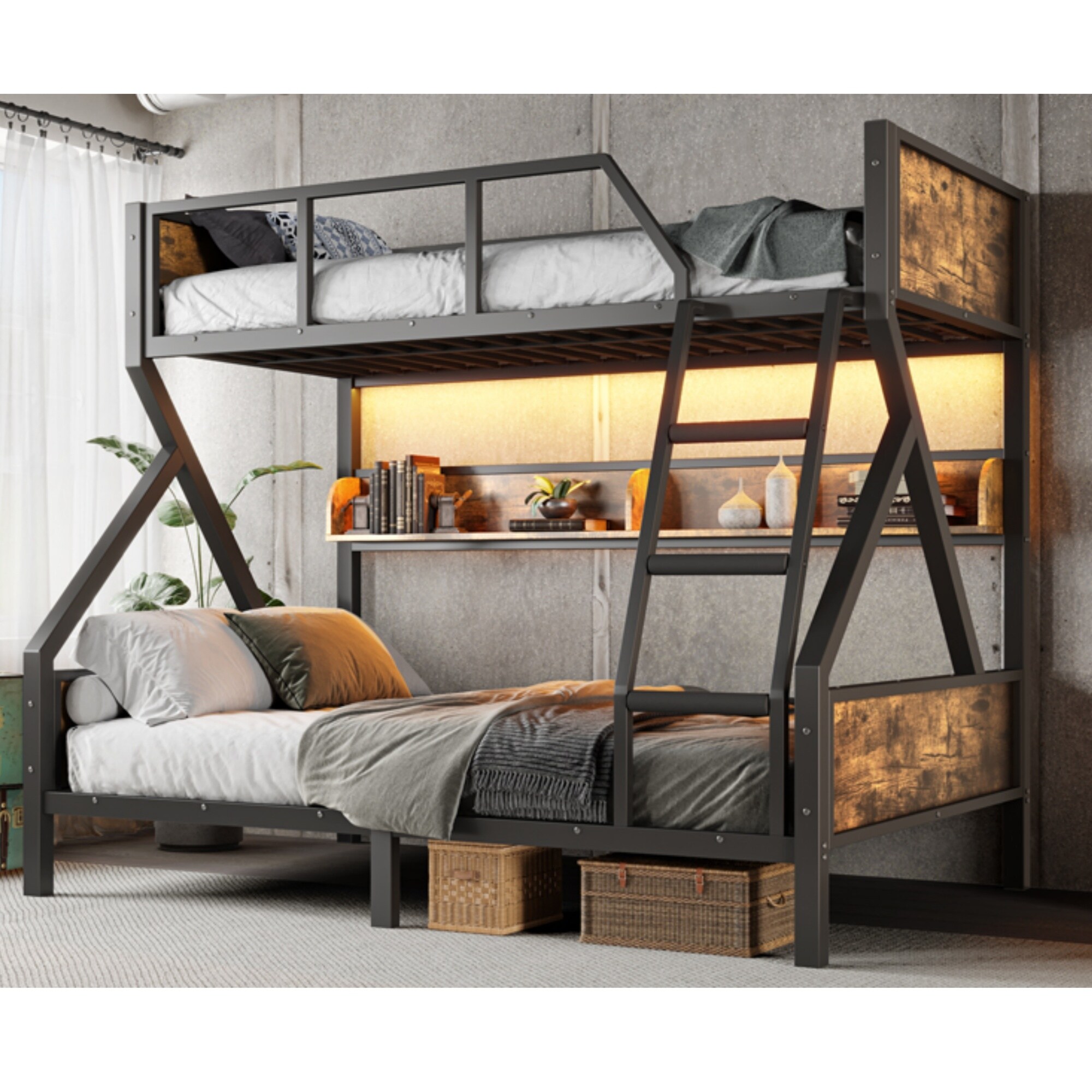 Twin-Over-Full Bunk Bed with Drawers, Ladder, and Storage Staircase