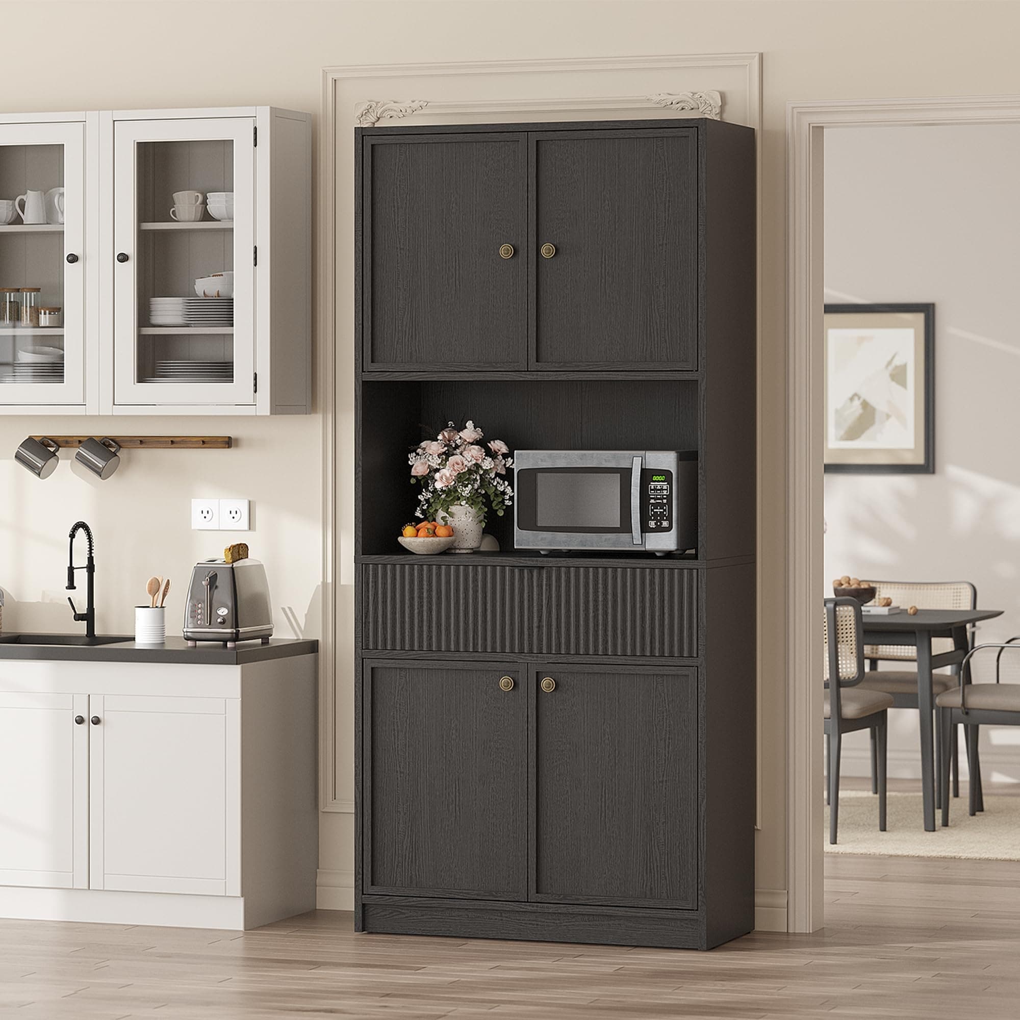 70" Tall Kitchen Pantry Cabinet with Adjustable Shelves Freestanding