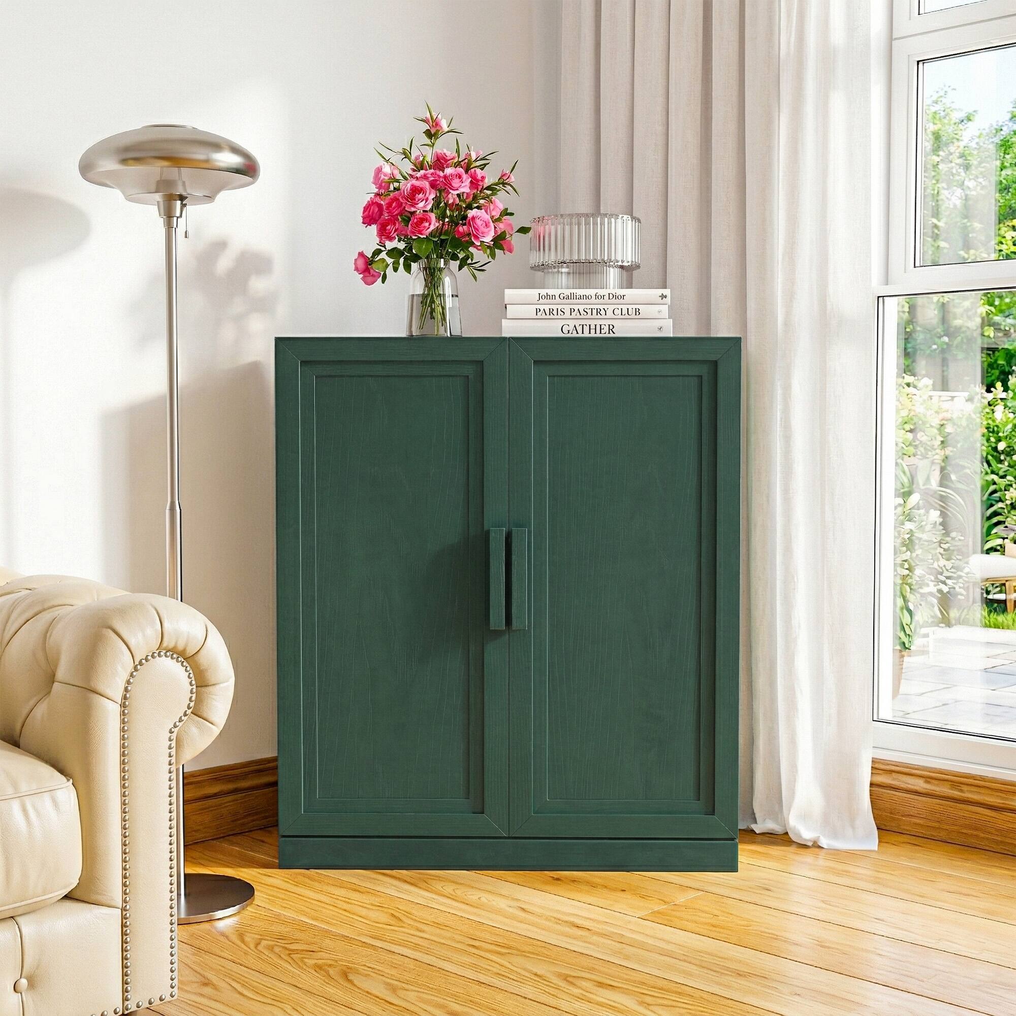 34.6 Inch Buffet Cabinet with Double Fluted Doors and Adjustable Shelves, Modern Coffee Bar Storage Cabinet - Natural