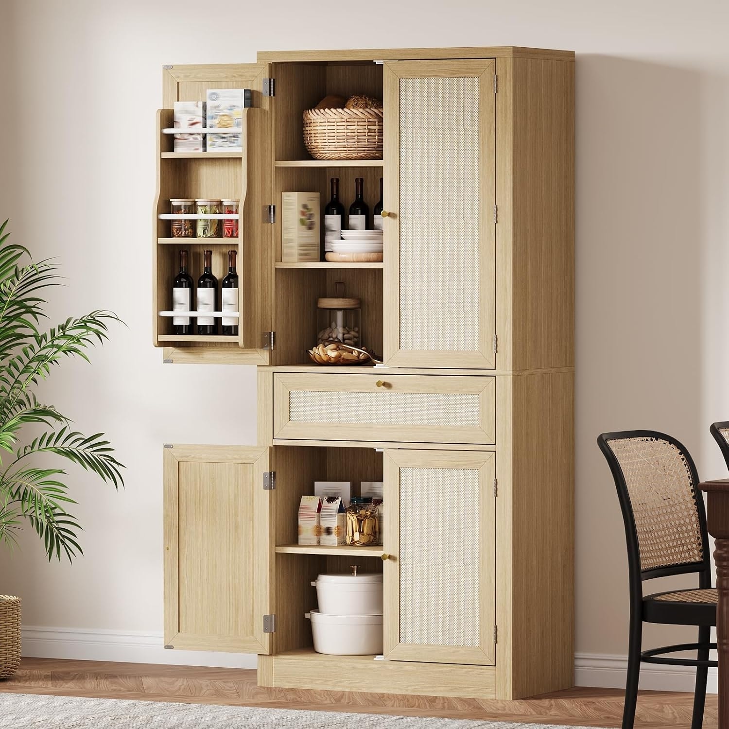 Kitchen Pantry Storage Cabinet,70'' Storage Cabinet with 2 Drawer and 3 Adjustable Shelves - Oak