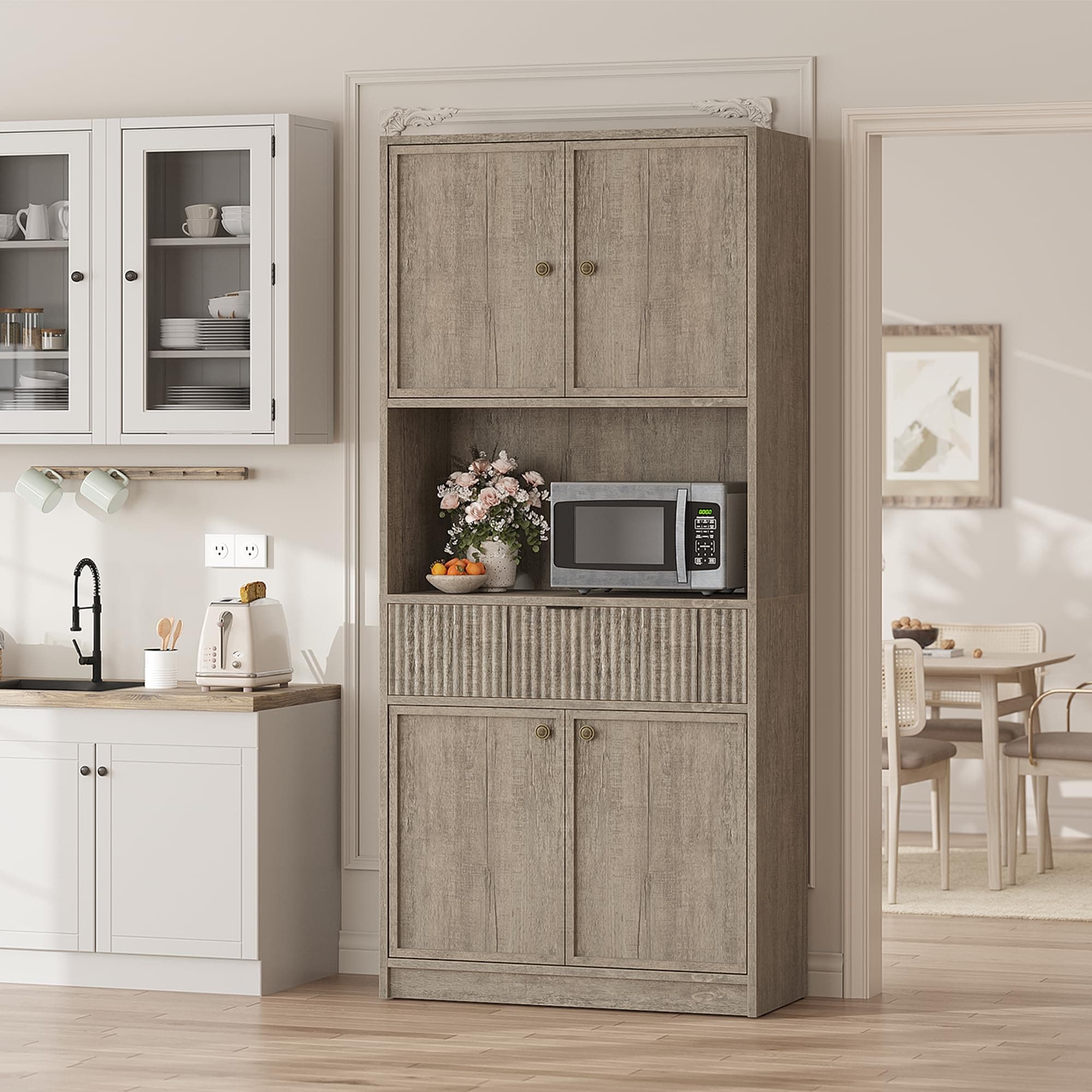 72" Tall Arched Kitchen Pantry, Wood Arch Kitchen Storage Cabinets with Doors and Drawers