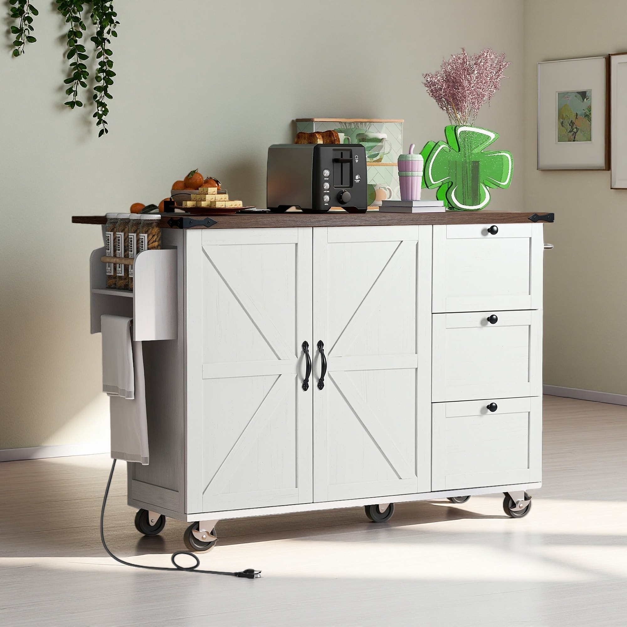 Power Outlet Kitchen Island with 2 Drop Leaf