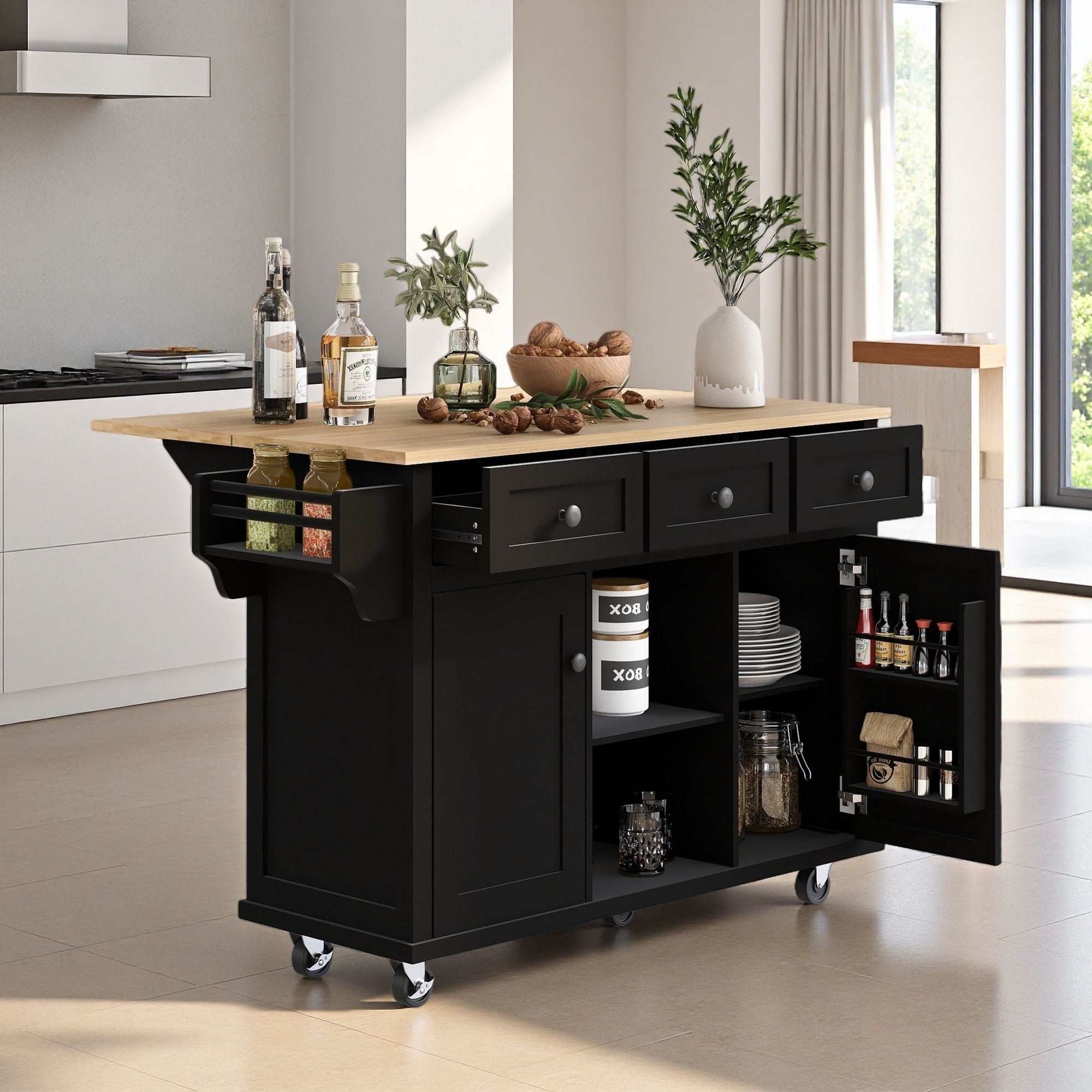 Versatile Kitchen Island with Spice Rack & Towel Bar & Drawers
