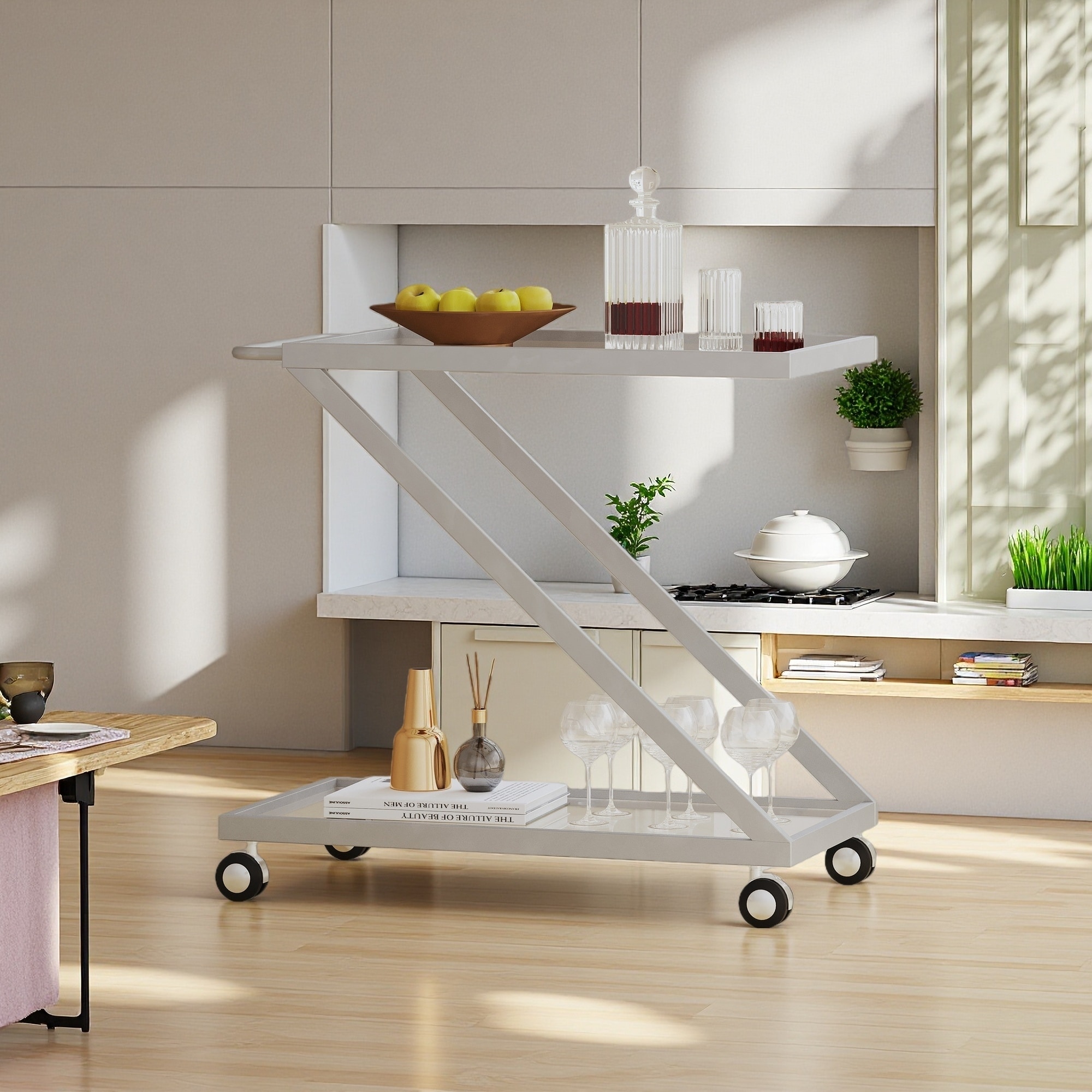 Kicthen Cart with Tempered Glass Shelves and Rolling Casters