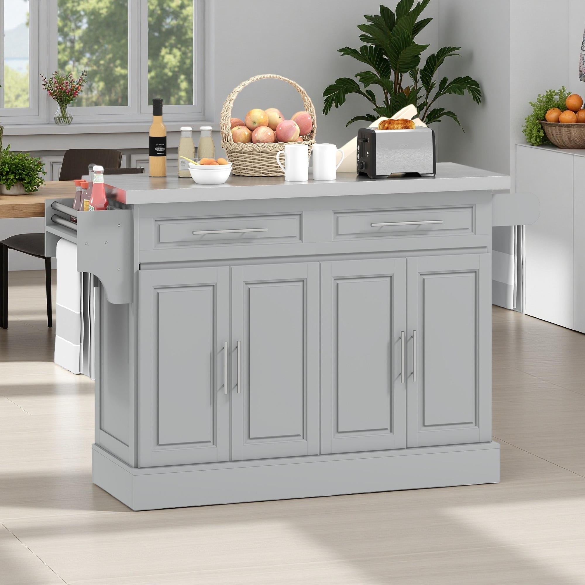 Kitchen Storage Island with Drop Leaf and Rubber Wood