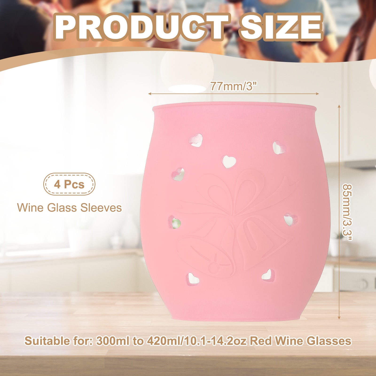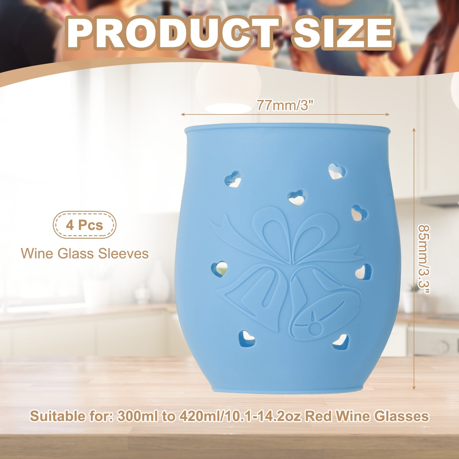 Silicone Wine Glass Sleeves, Red Wine Glass Covers Non-Slip Stemware Covers Champagne Identifiers for Party Picnic Outdoor
