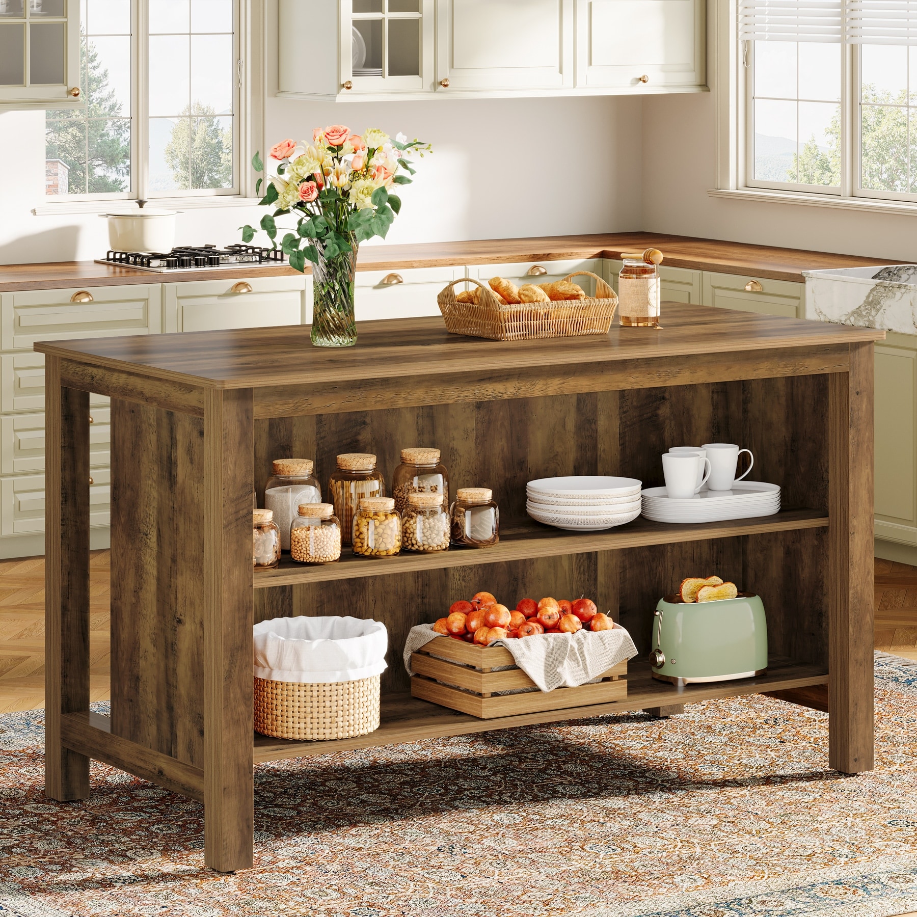 Kitchen Island with Storage Stationary Island Table for Kitchen