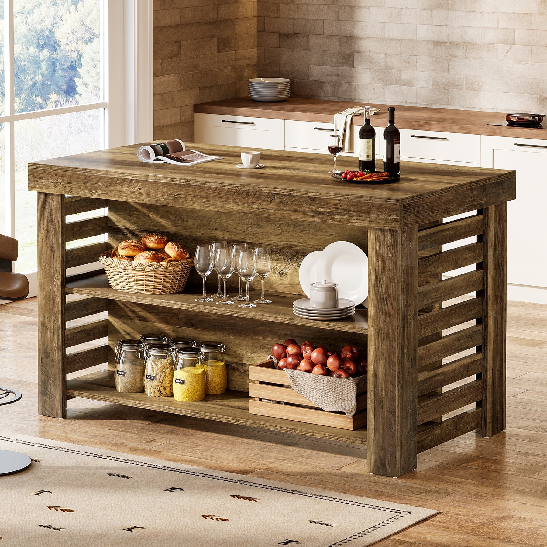 Kitchen Island with Storage, 55" Counter Height Kitchen Island Table - 27.5" D x 55.1" W x 35.4" H